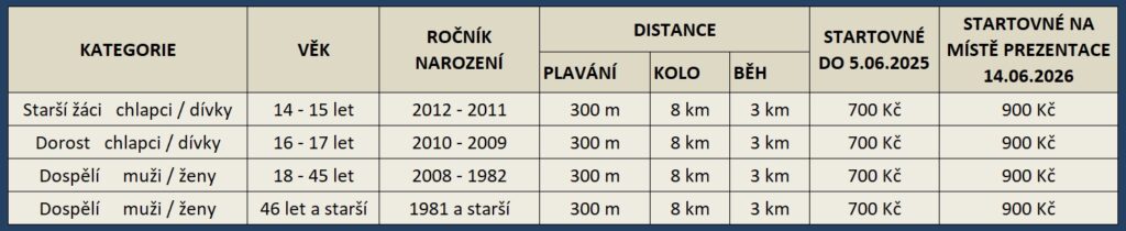 SHORT plavání 0,3 km / kolo 8 km / běh 3 km